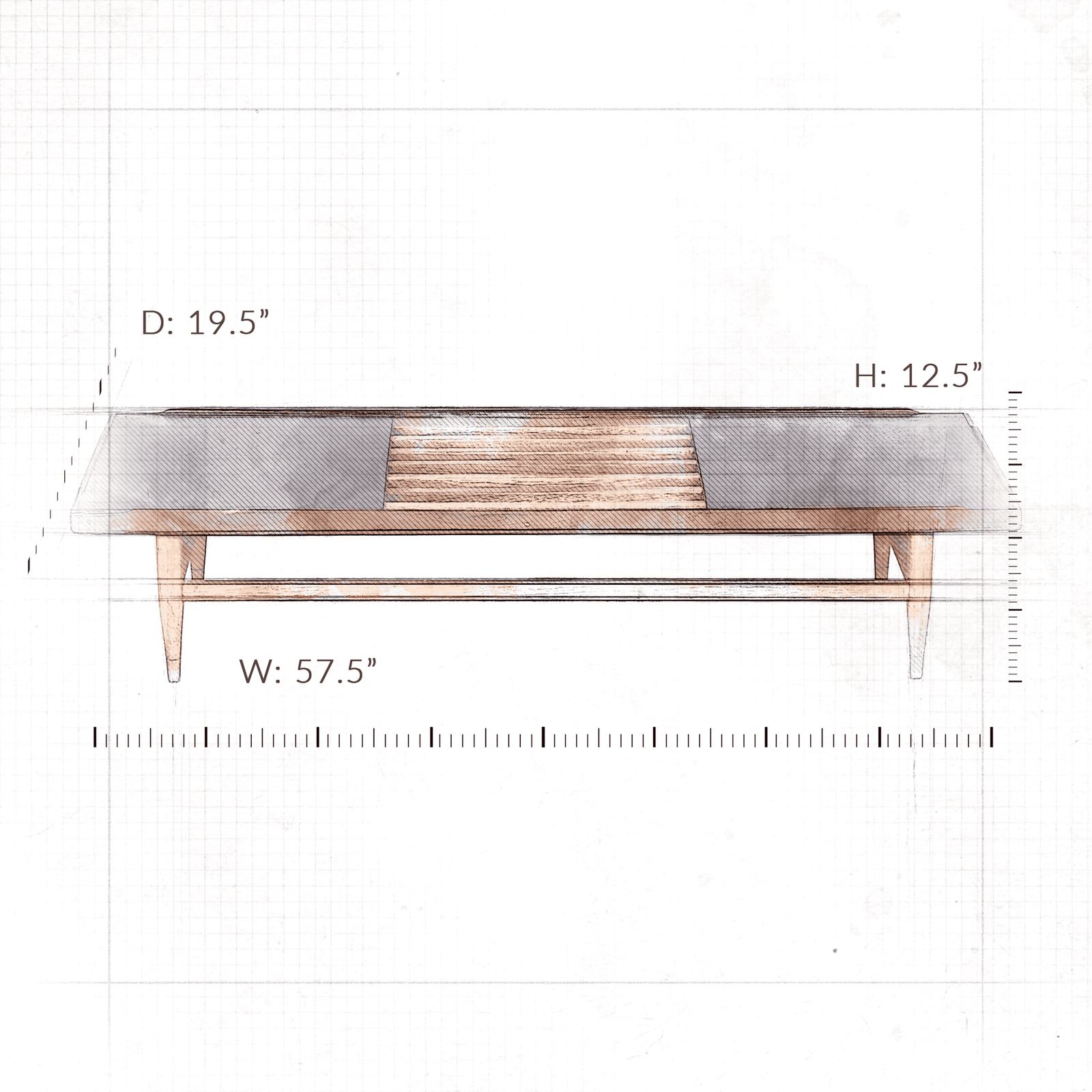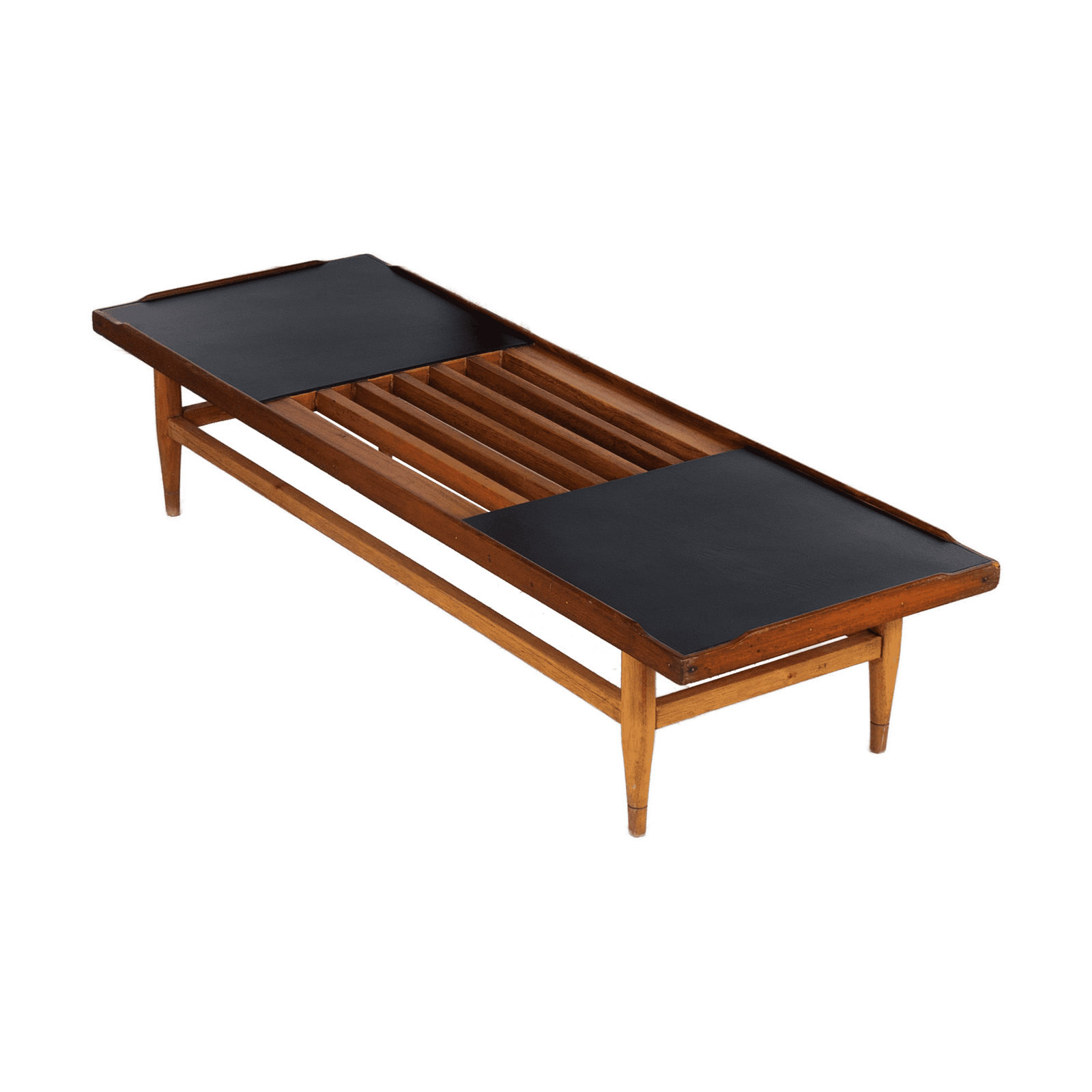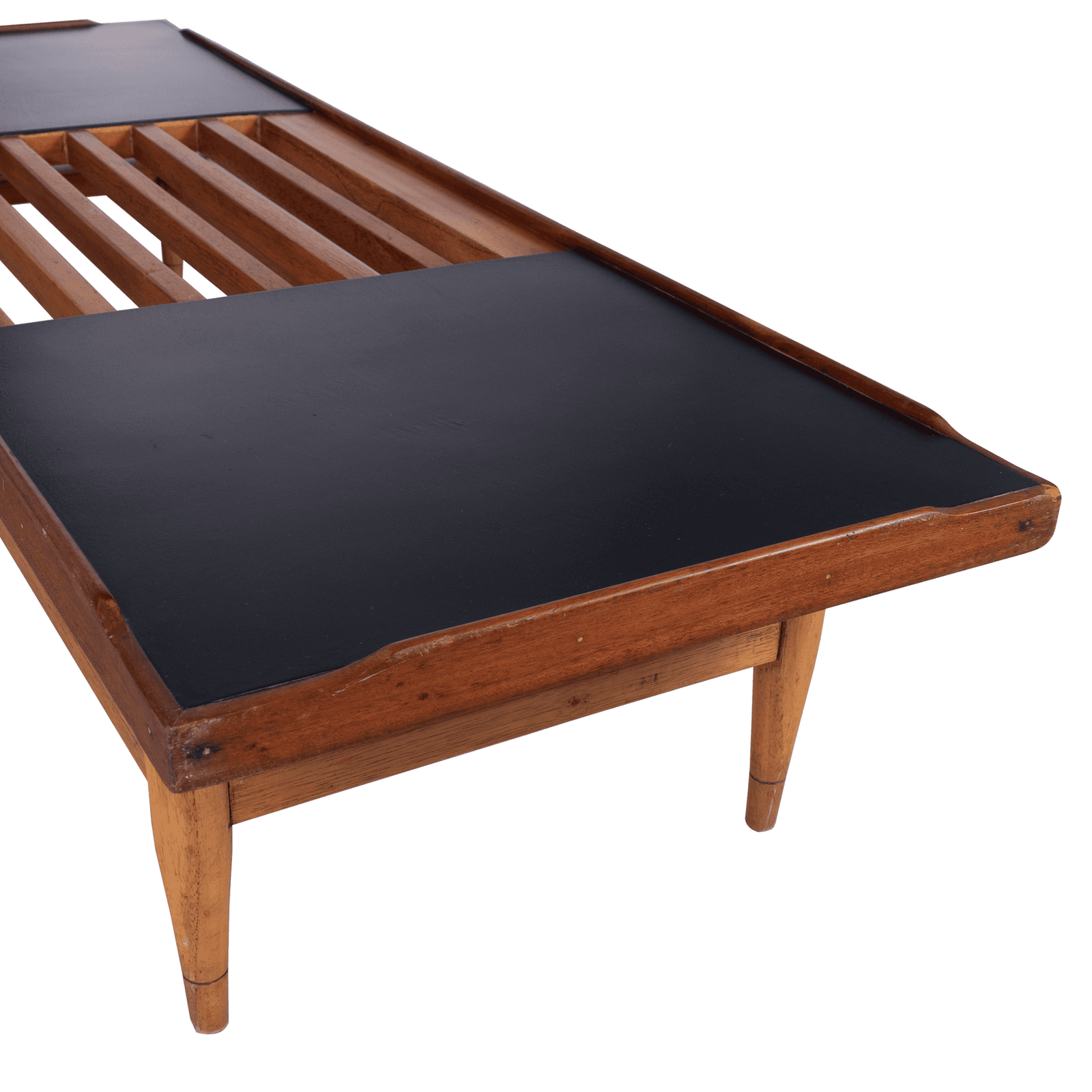 Originally from Chile, this 1950s Mid-Century Modern slatted coffee table captures the iconic design of George Nelson, blending form and function in one elegant piece. Crafted with clean lines and minimalist aesthetics, the table features a unique slatted top with contrasting black laminate panels, adding both visual interest and practical surface space.