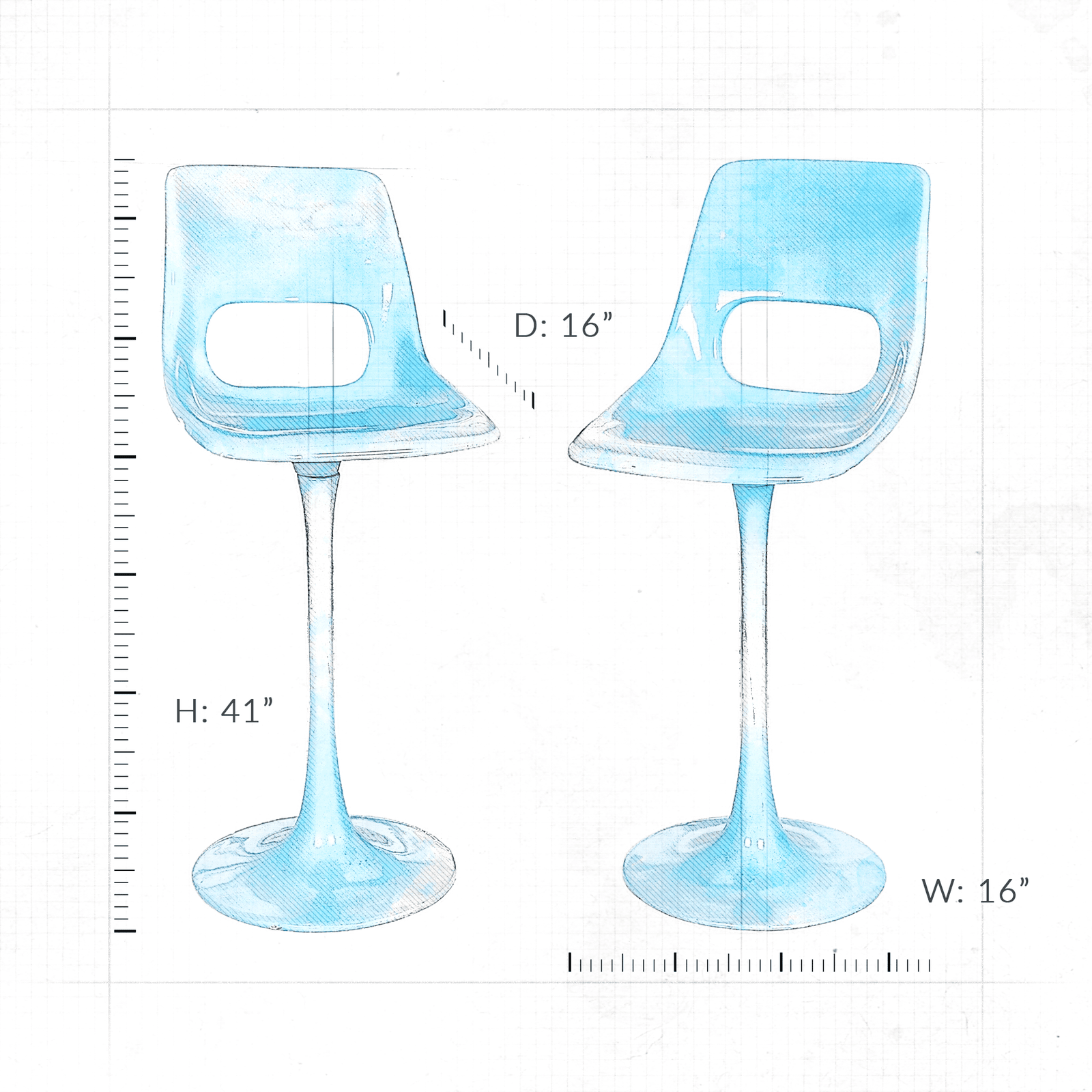 Add a splash of retro flair to your space with these vibrant 1960s Brazilian Mod Tulip Stools. Featuring a striking glossy sky blue finish and iconic mid-century modern design, these stools embody the playful and futuristic aesthetic of the era.