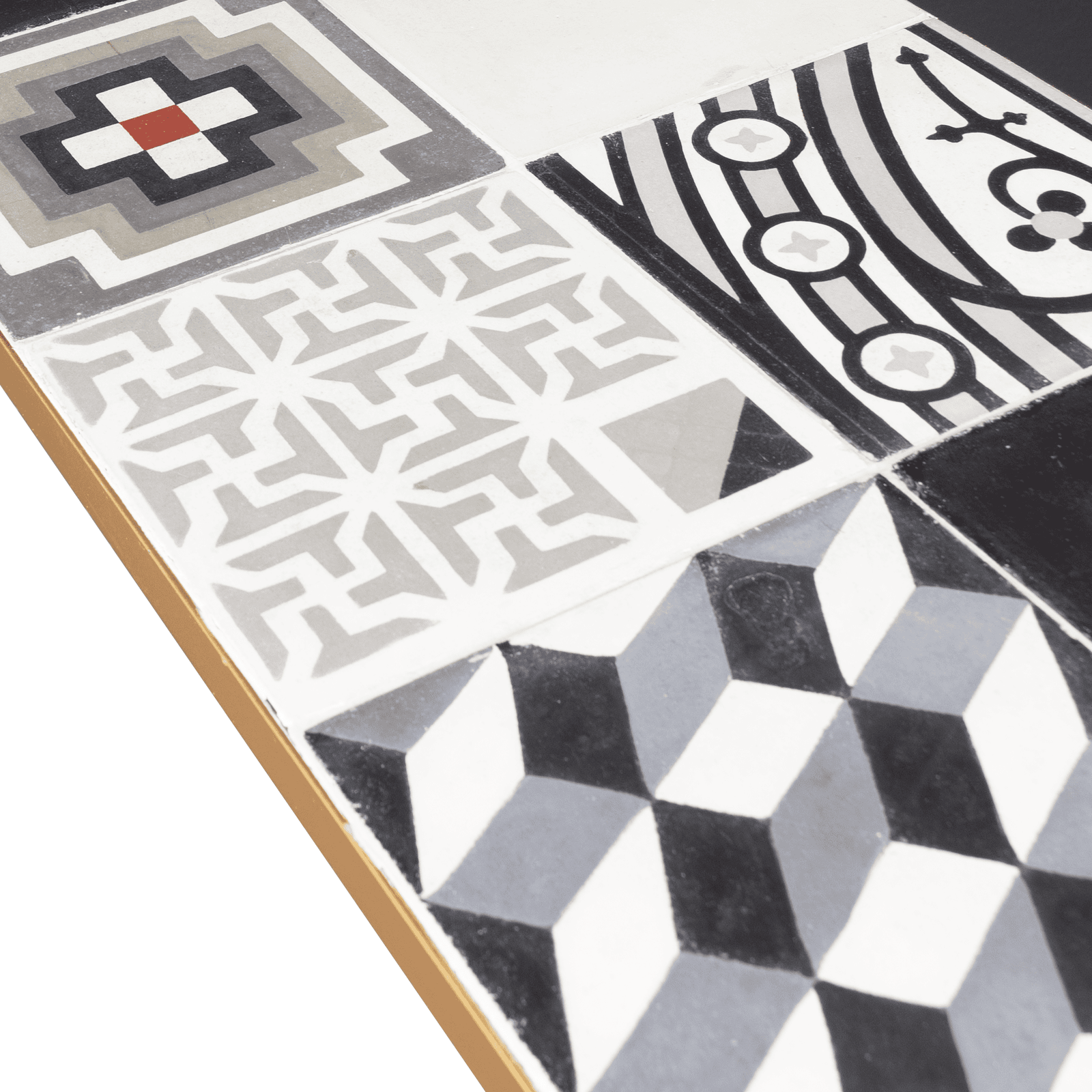 The gold-finished metal frame and black-and-white abstract design create a striking contrast, making it a perfect addition to any modern or eclectic decor. Add a touch of Colombian craftsmanship and sustainable design to your home today!