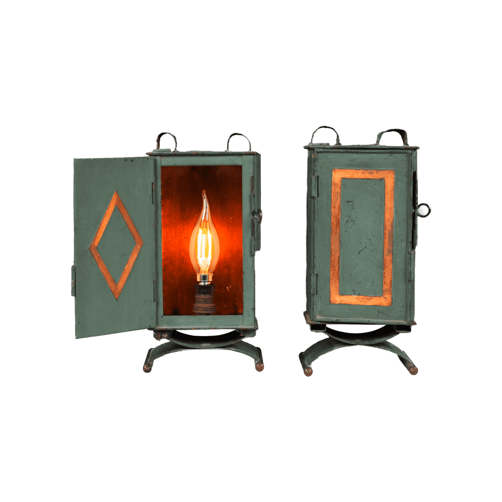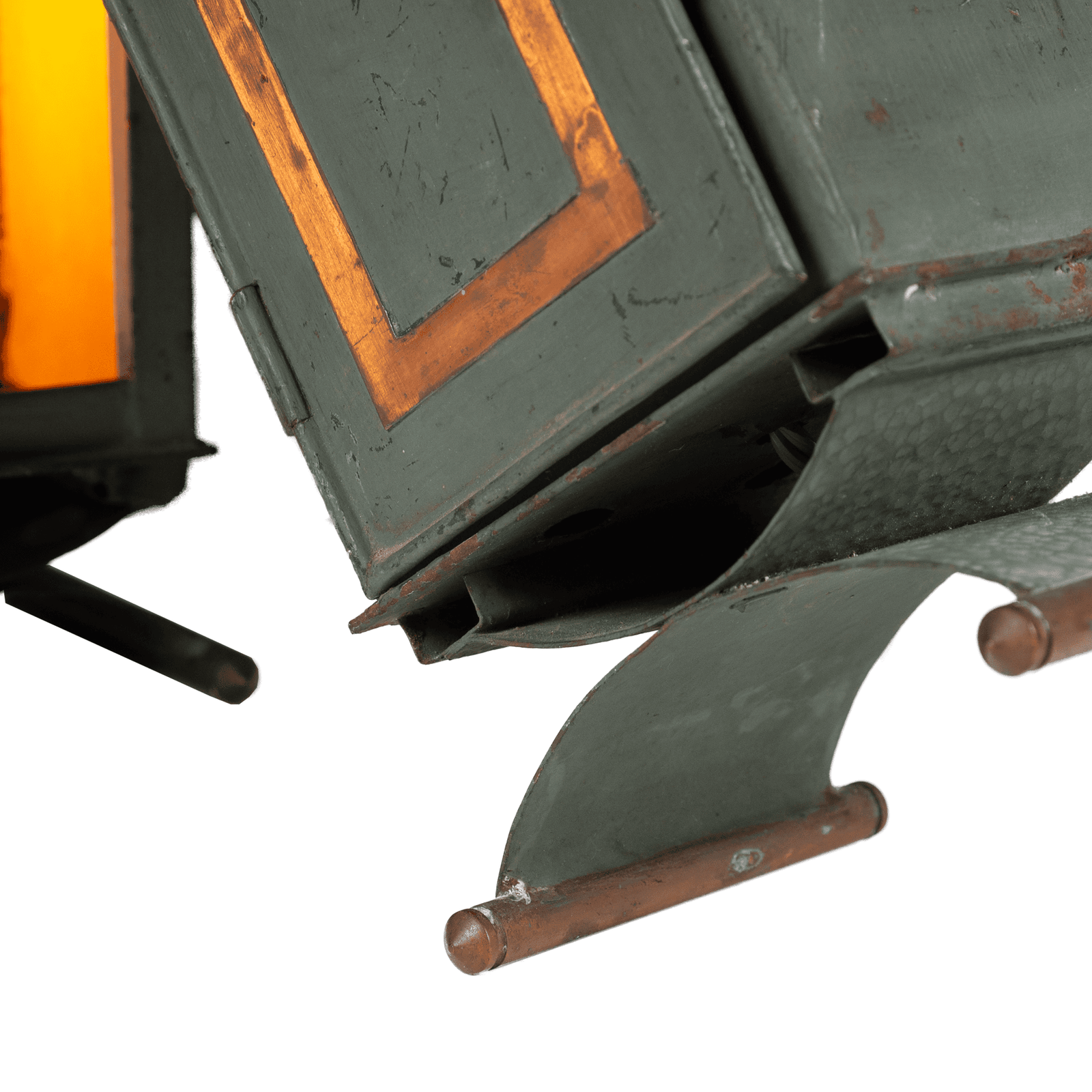Two original antique railway lamps, thoughtfully updated with modern elecrical components. Once employed by signalment to iluminate and mark the way, these pieces historic now combine nostalgia and functionality to add a unique touch to your space.