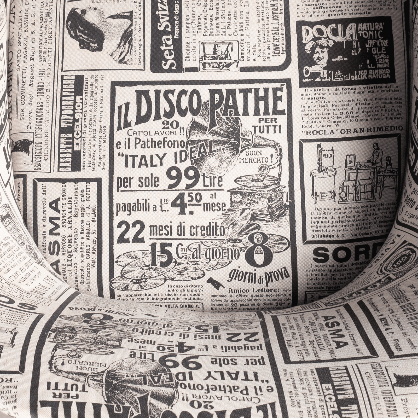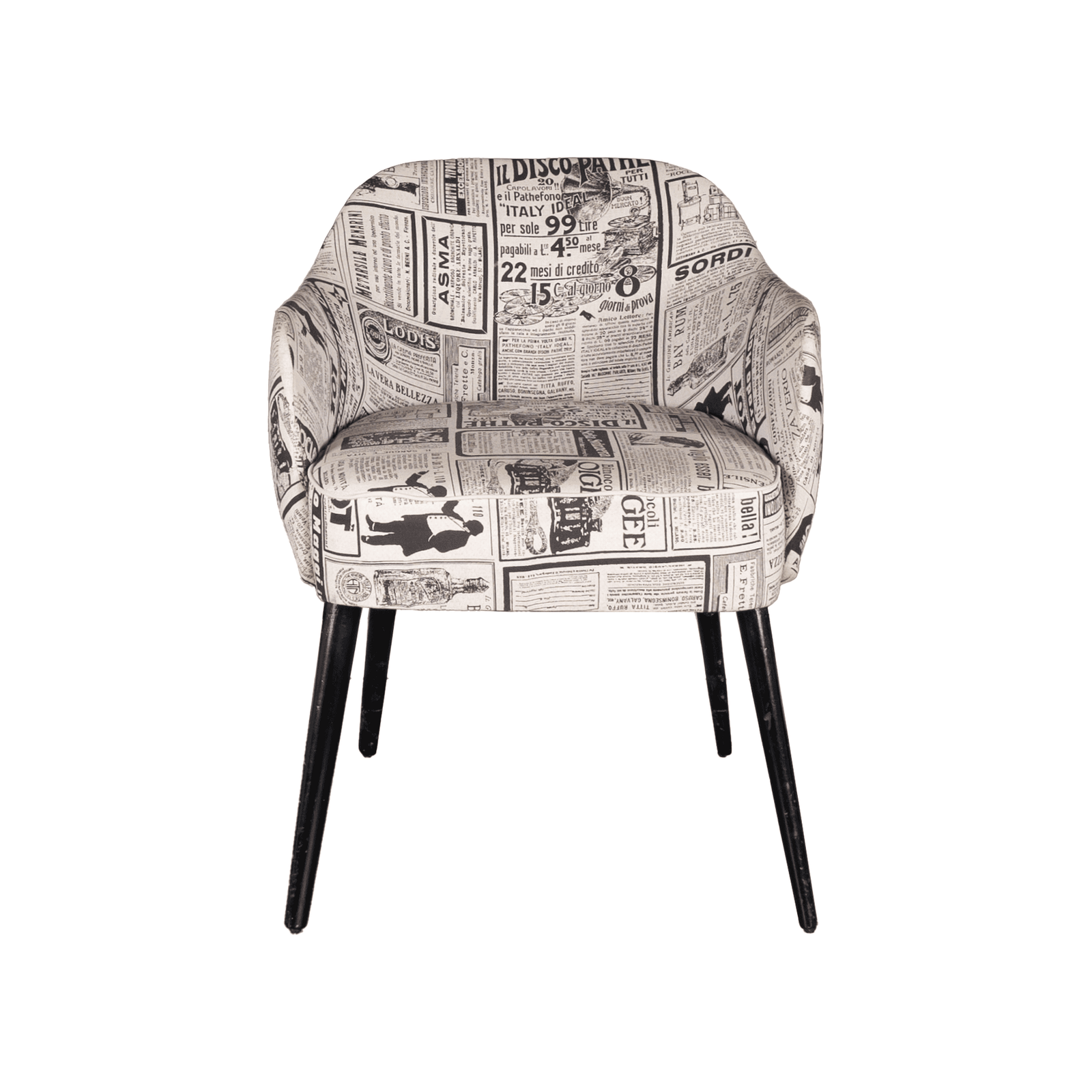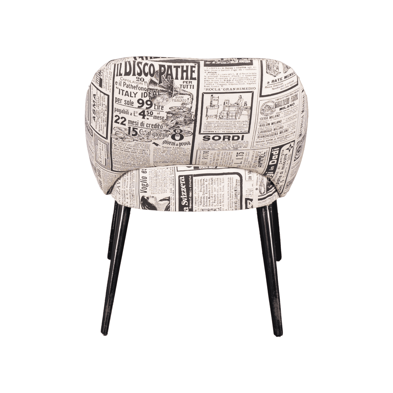 Discover the perfect blend of vintage charm and modern style with this unique chair from Colombia. Originally designed with a classic touch, this chair has been revitalized with a new fabric featuring a vintage newspaper print pattern.