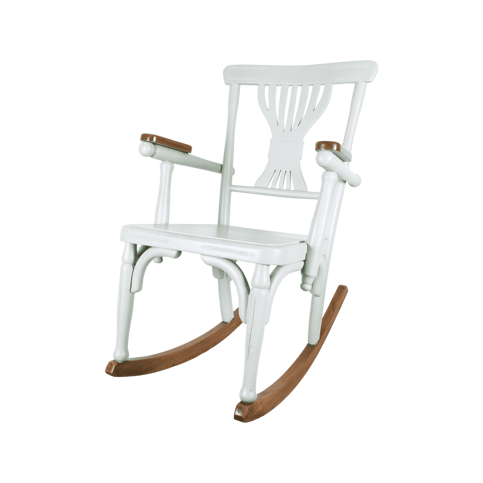 Experience comfort and companionship with this vintage double rocking chair from Argentina. Featuring two side-by-side seats on elegantly curved wooden rockers, it’s crafted with meticulous detail. The light gray paint and natural wood-finished armrests add a rustic touch to this unique piece.
