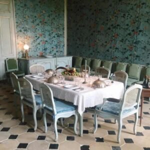 Thanks to Madame de Pompadour, who replaced the tapestries in her palaces with wallpaper imitating damasks, silks, and brocades, wallpaper decoration became popular among the French aristocracy.